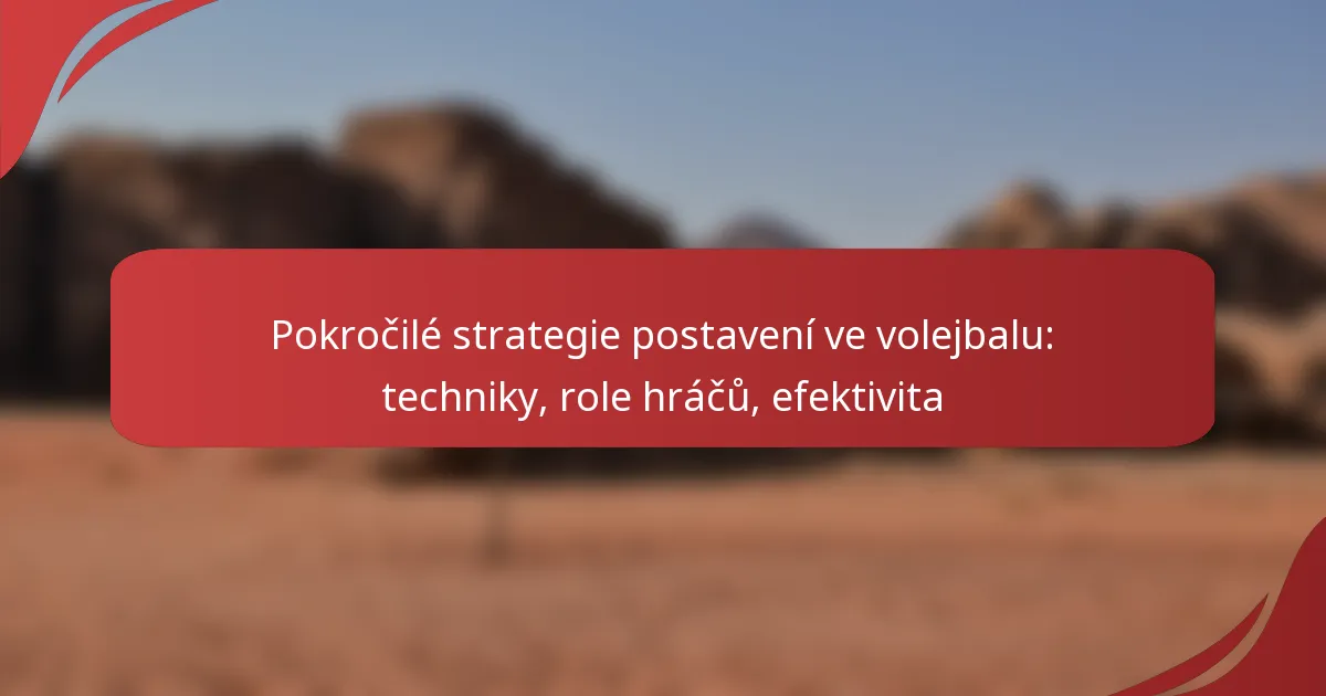 Pokročilé strategie postavení ve volejbale se zaměřují na taktické uspořádání hráčů, aby se zvýšil jak individuální, tak týmový výkon. Pochopením specifických rolí hráčů a použitím efektivních technik mohou týmy zvýšit svůj potenciál v bodování a obrannou sílu, což nakonec vede k většímu úspěchu na hřišti.