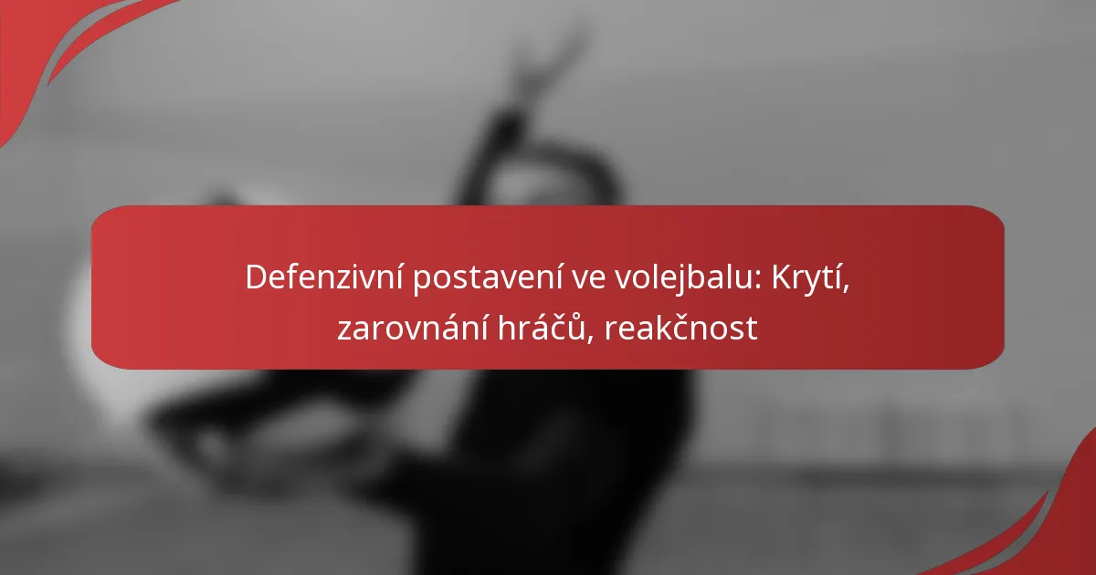 Defenzivní postavení ve volejbale se týká strategického rozmístění hráčů na hřišti, aby efektivně reagovali na útoky soupeřova týmu. Je zásadní pro minimalizaci skórovacích příležitostí soupeře a zlepšení celkového výkonu týmu.